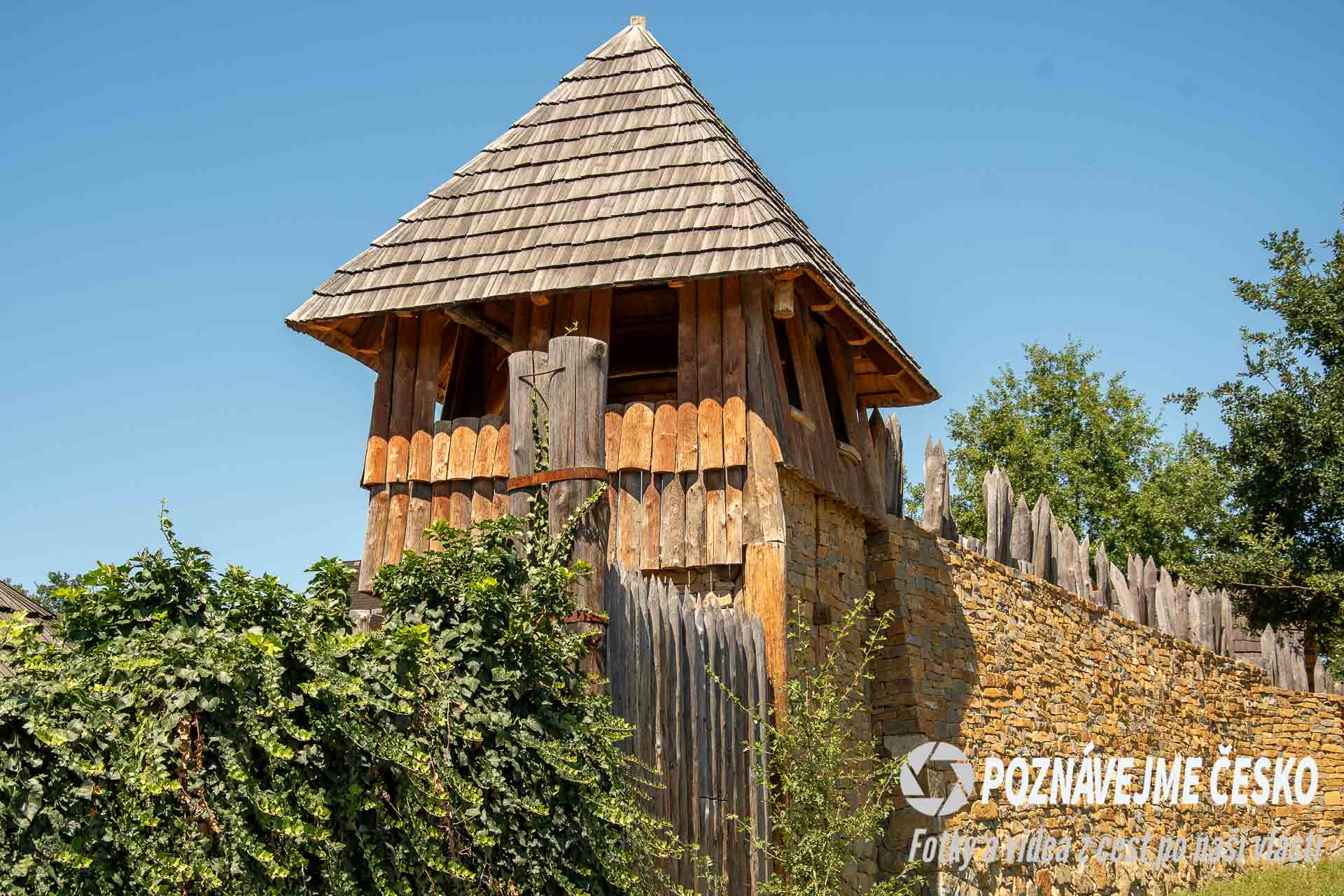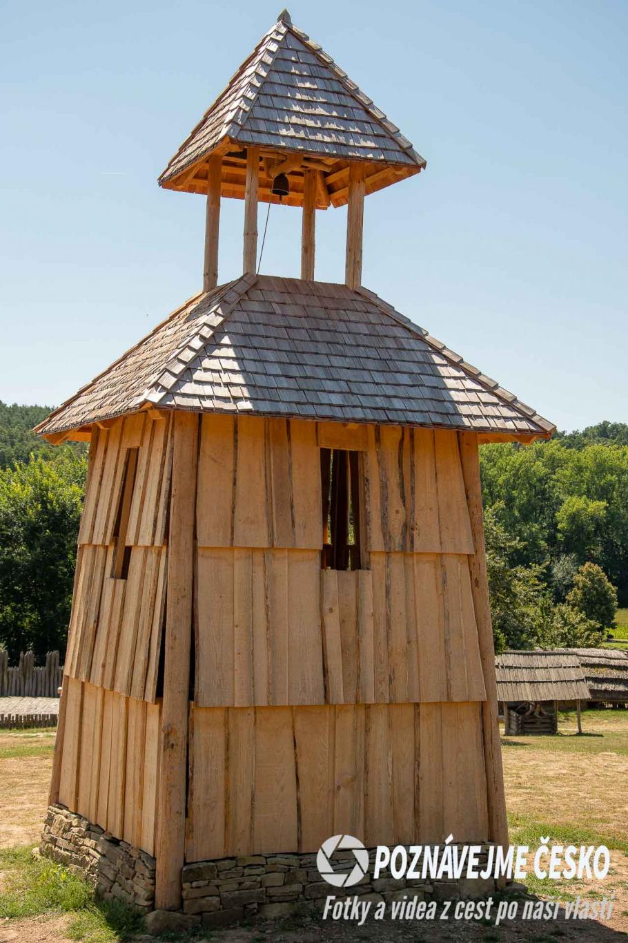 Mohutná hradba s čelní kamennou zdí je postavena podle nálezů ze Starého Města a Uherského Hradiště. Podobné opevnění chránilo nejvýznamnější centra Velké Moravy.