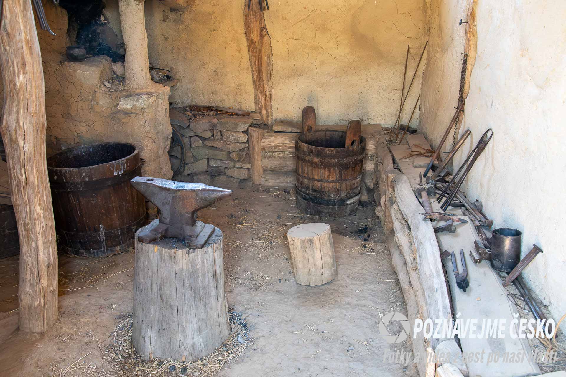 Kovářství, hrnčířství i tavba kovů vycházejí z experimentální archeologie. Používají se postupy a nástroje odpovídající 9. století.