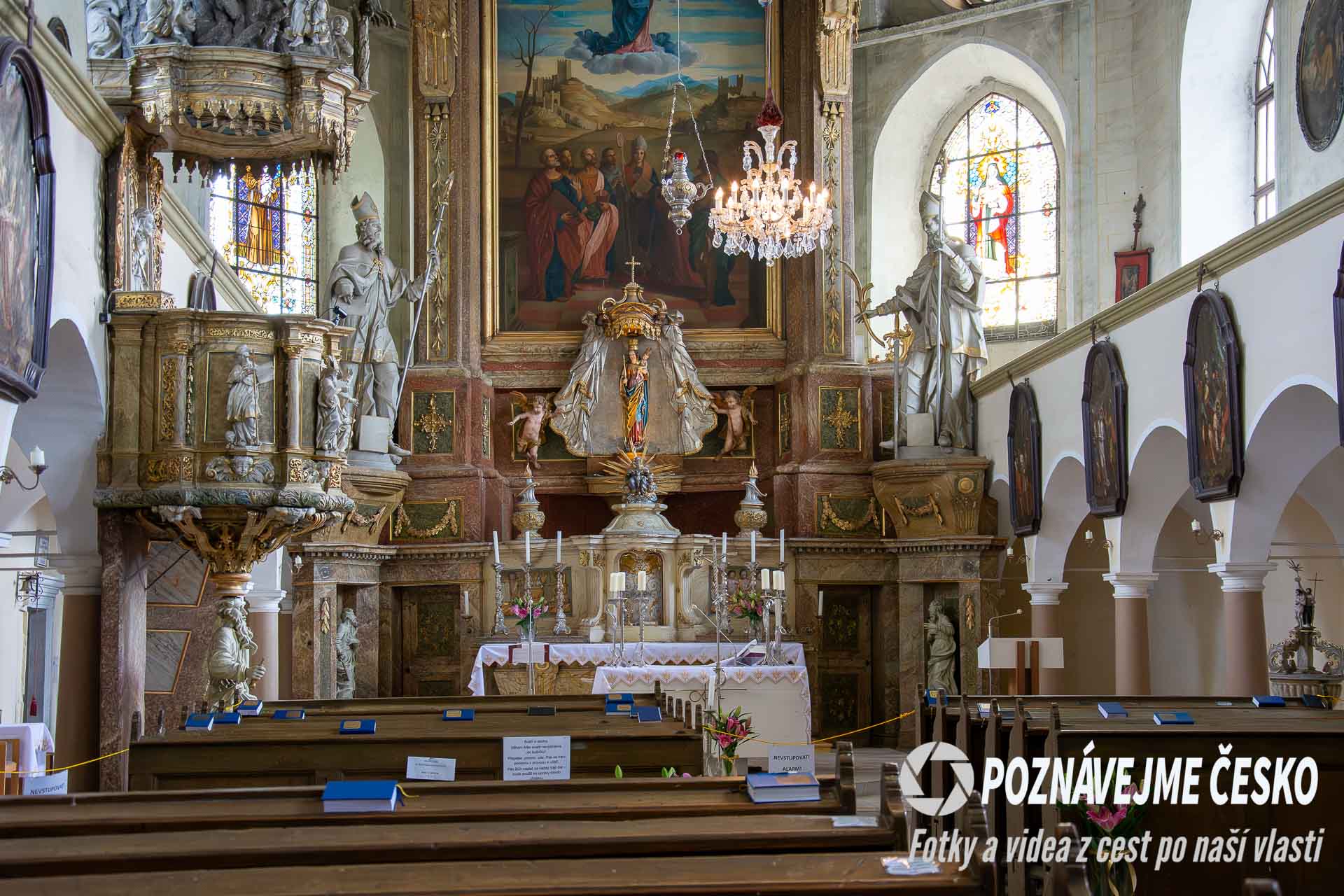 Hlavní oltář pochází z roku 1743 a dominuje mu obraz Nanebevzetí Panny Marie. Nad ním je umístěna socha patrona kostela, svatého archanděla Michaela. Součástí oltáře je také kopie vzácné gotické sochy Panny Marie z druhé poloviny 16. století, jejíž originál je dnes zapůjčen do arcibiskupského muzea v Olomouci.