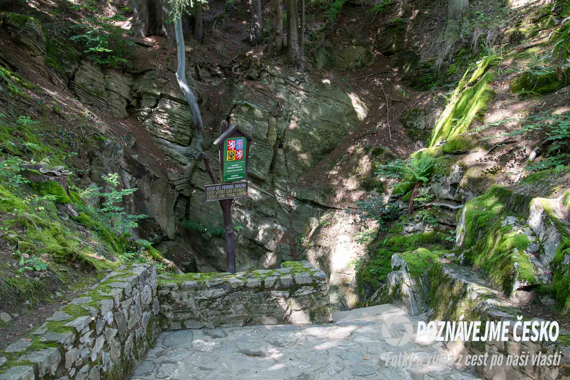 Na velké části prohlídkové trasy se dodnes dochovaly původní kamenné schody z doby prvního zpřístupnění. Na krátkém úseku jich návštěvníci překonají téměř čtyři stovky.