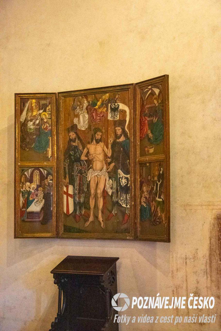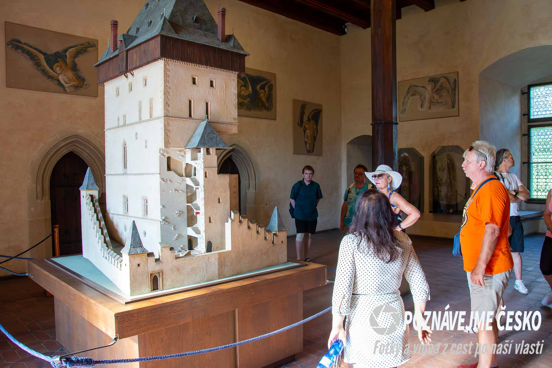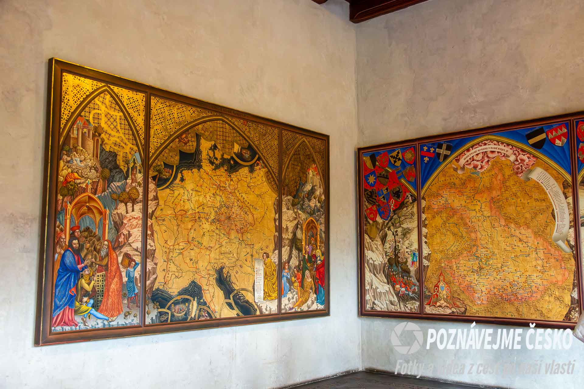 Již v roce 1355 zde Karel IV. pobýval a pečlivě se staral o výzdobu interiérů. Největší důraz byl kladen na Kapli sv. Kříže, která se stala svatyní s více než 129 deskovými obrazy mistra Theodorika. V této kapli měl Karel IV. soukromou modlitebnu a místo pro uložení říšských korunovačních klenotů.