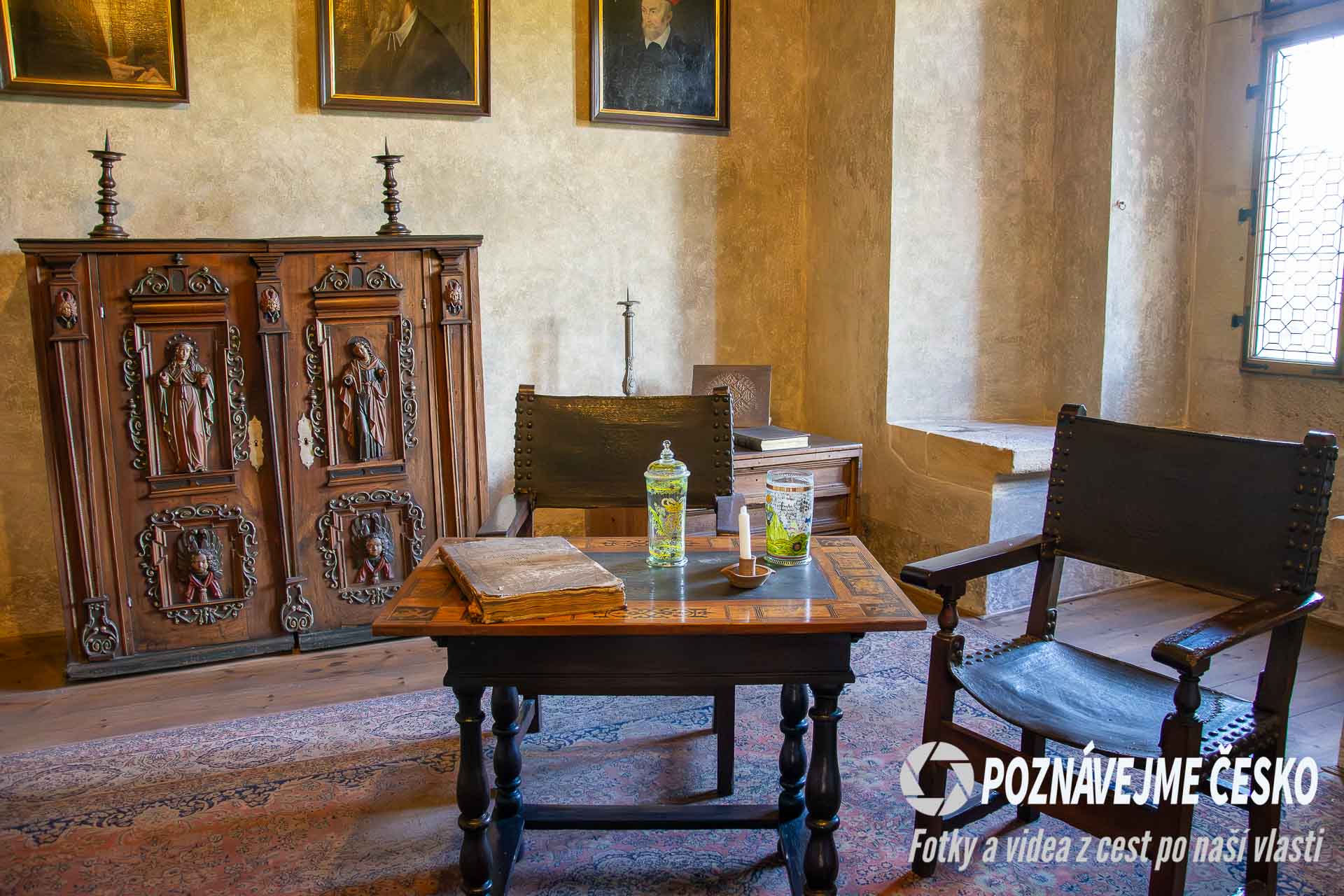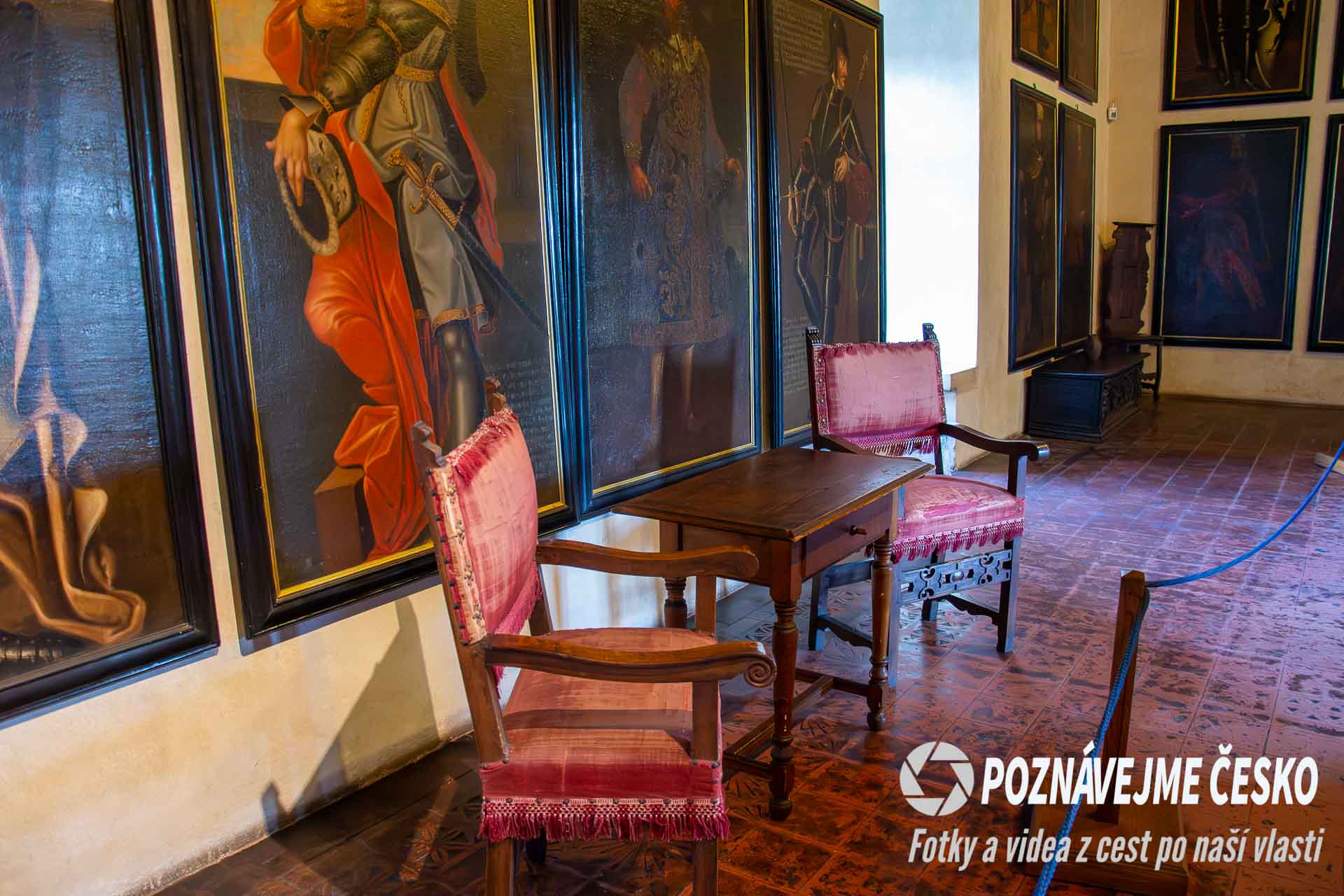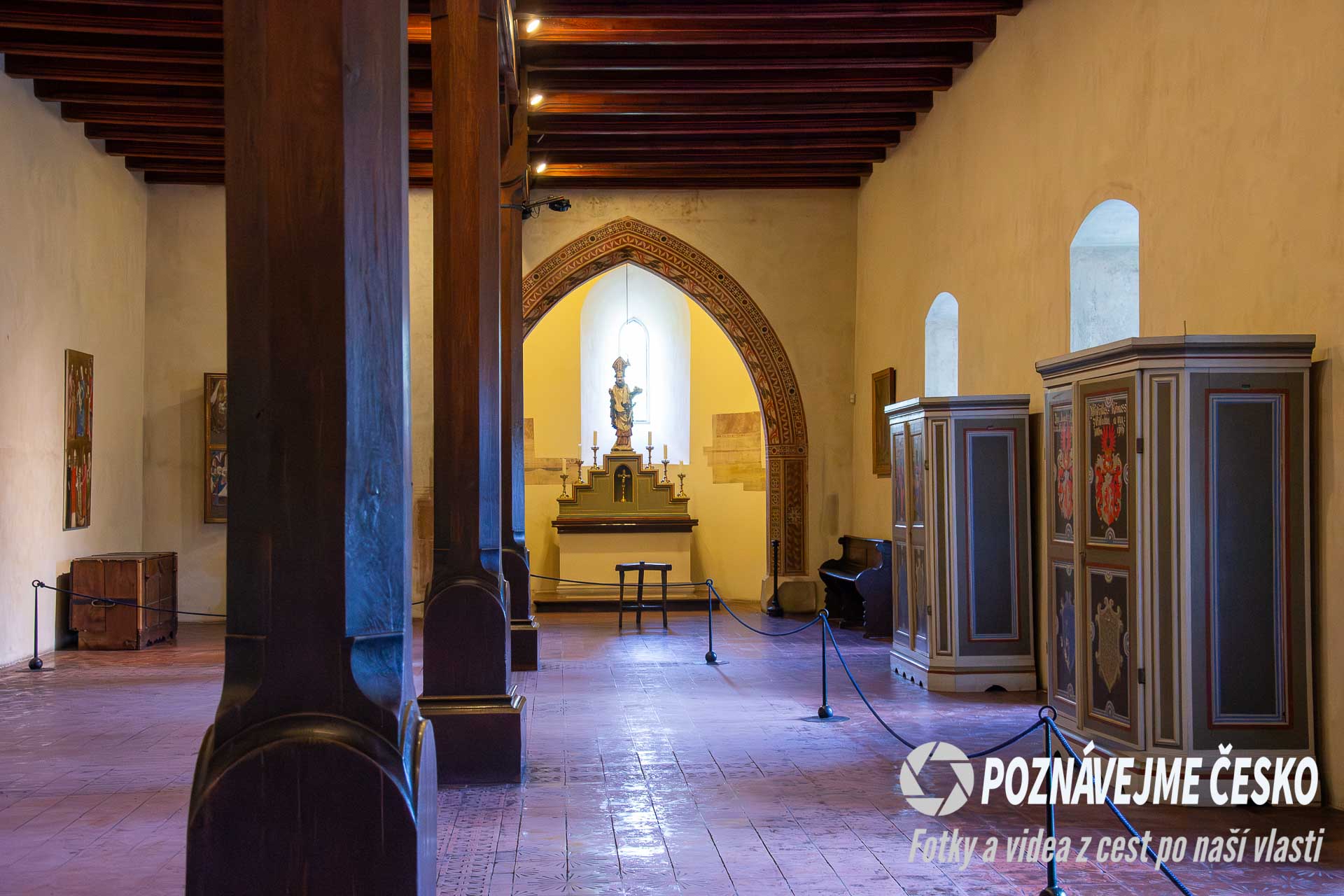 Již v roce 1355 zde Karel IV. pobýval a pečlivě se staral o výzdobu interiérů. Největší důraz byl kladen na Kapli sv. Kříže, která se stala svatyní s více než 129 deskovými obrazy mistra Theodorika. V této kapli měl Karel IV. soukromou modlitebnu a místo pro uložení říšských korunovačních klenotů.