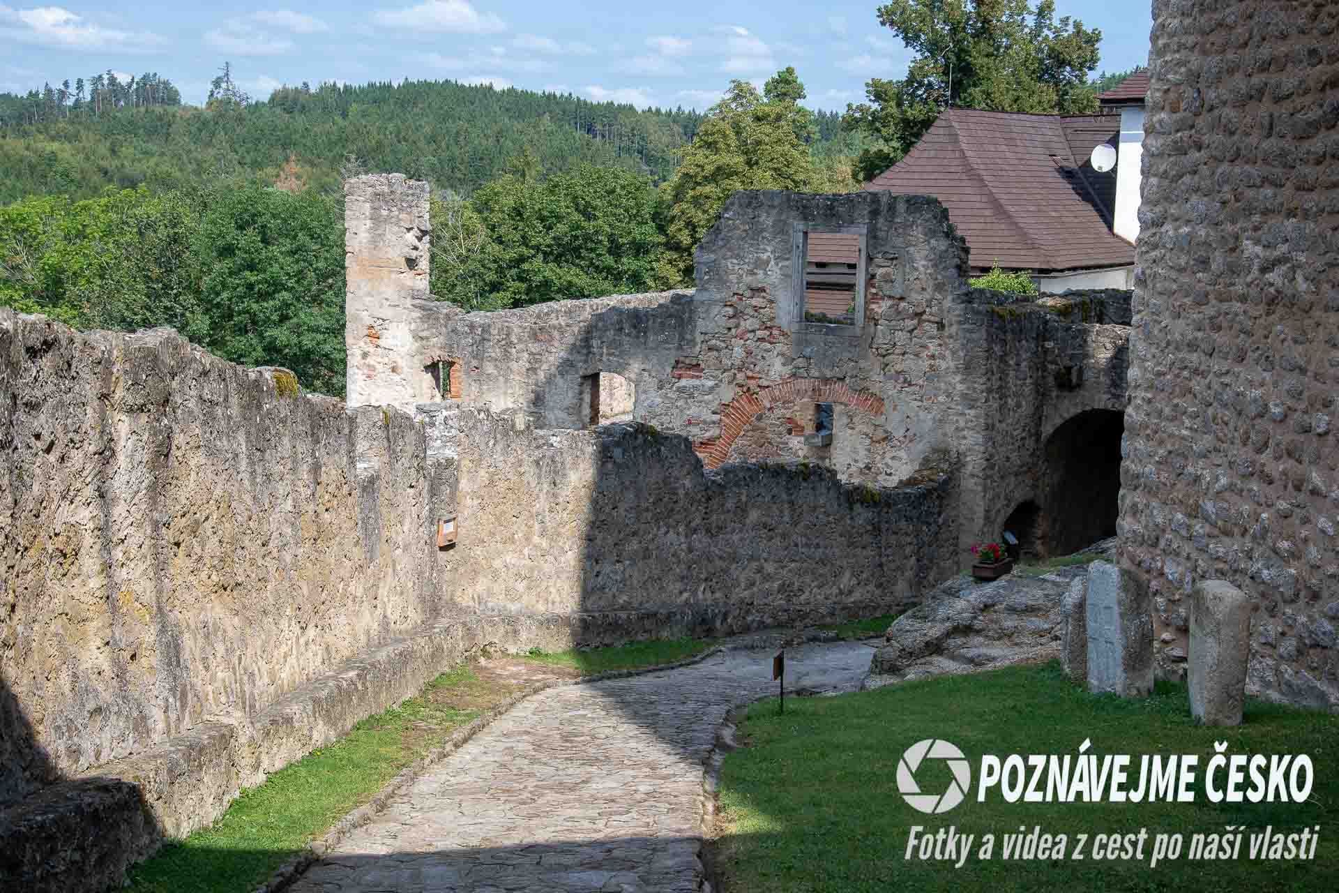 Nejstarší podoba hradu se dodnes čte z jeho románského jádra, které patří k nejcennějším památkám svého druhu ve střední Evropě. Dvě hranolové věže propojené palácem vytvářejí kompaktní celek, jenž nemá v českých zemích mnoho obdob. Jižní, větší věž sloužila jako útočištný bergfrit a poslední obranná linie, severní věž byla naopak obytná a ukrývala románskou kapli. Právě tato kaple, dochovaná s velkou částí původních omítek, je tichým, ale mimořádně působivým svědkem duchovního života středověkého hradu.