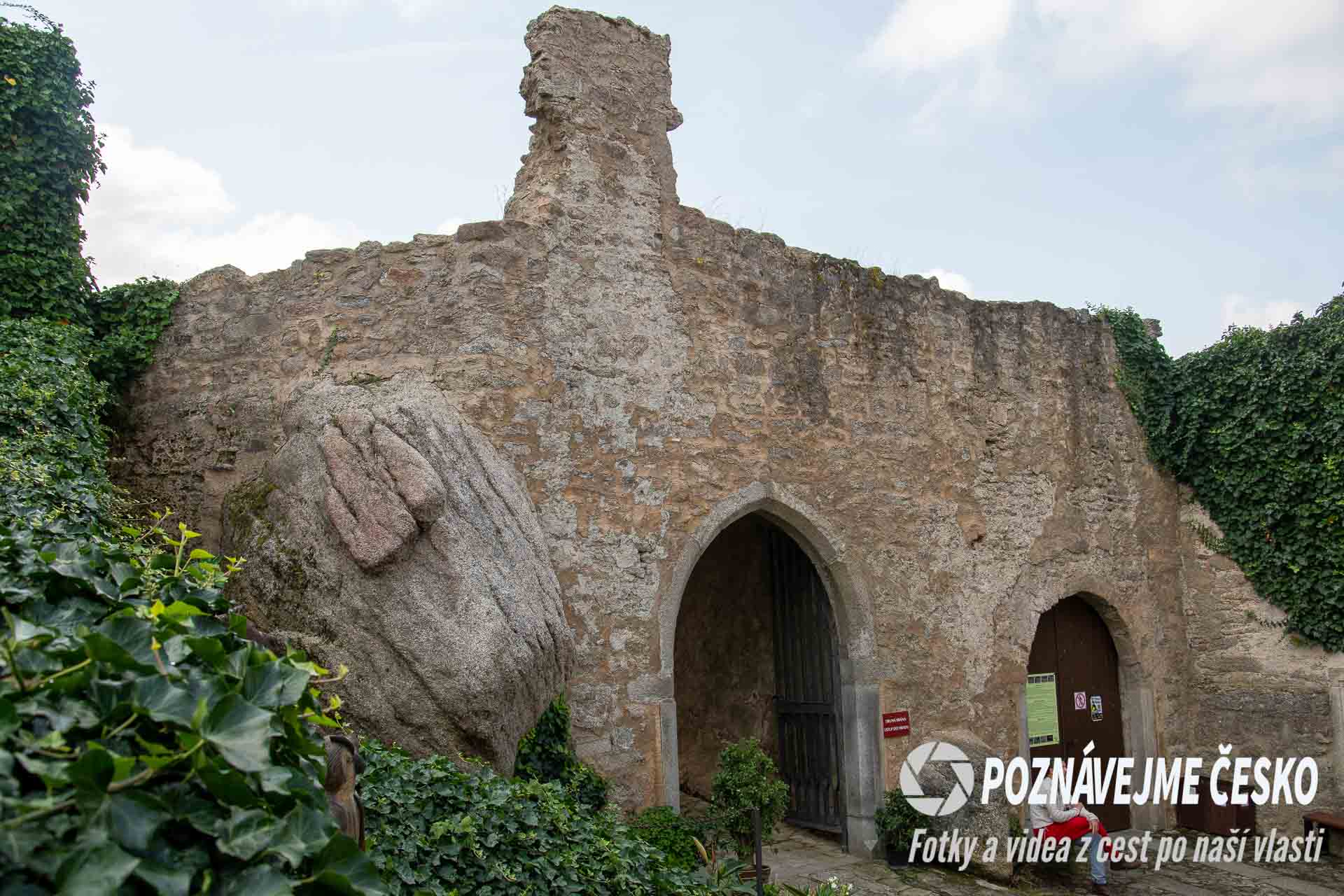 Současný hlavní vstup do hradu vede přes třetí bránu s typickým přetínaným gotickým obloukem. Původní románský vstup byl přitom veden zcela jiným směrem.