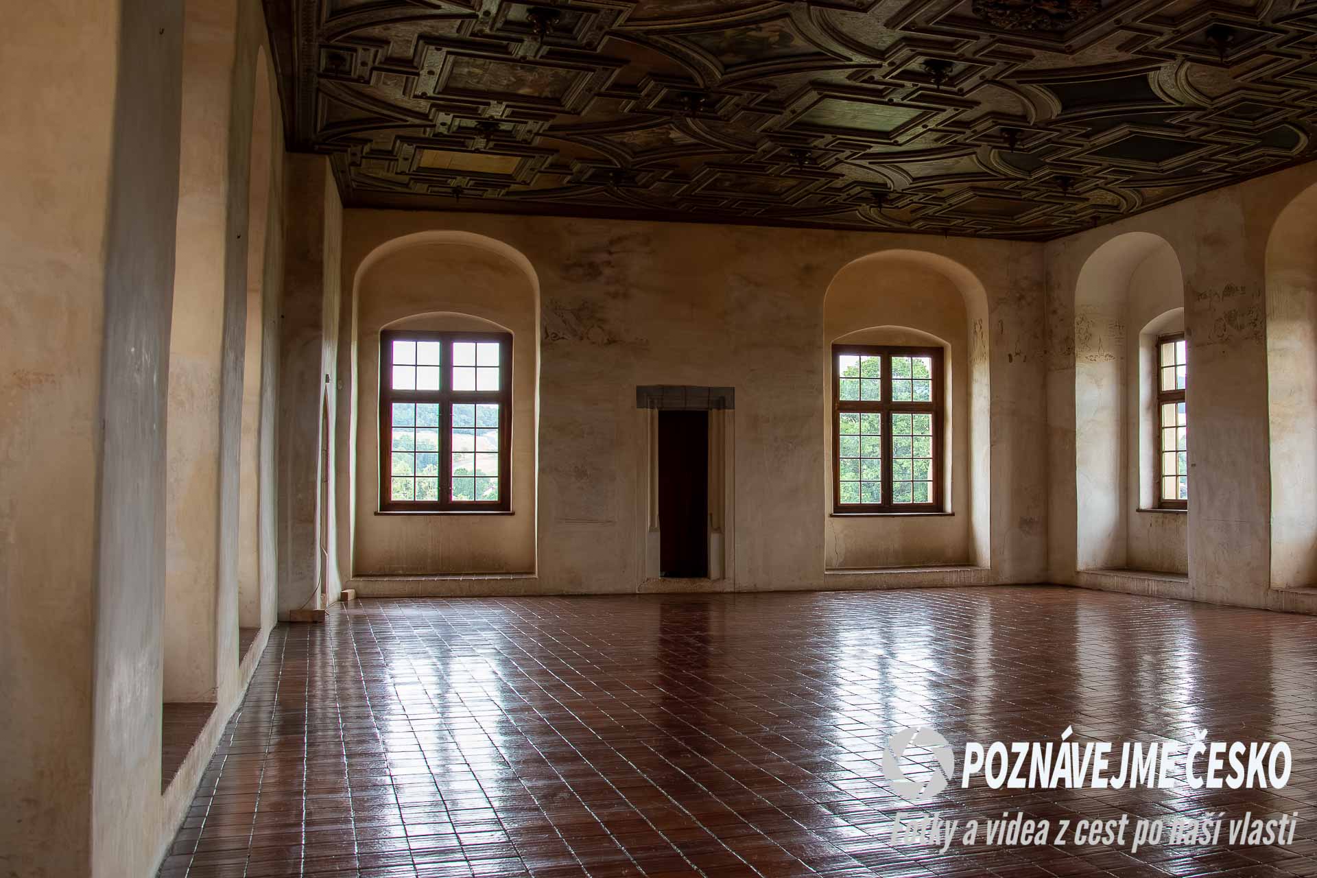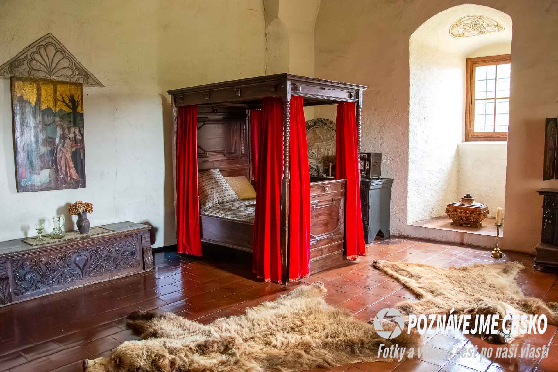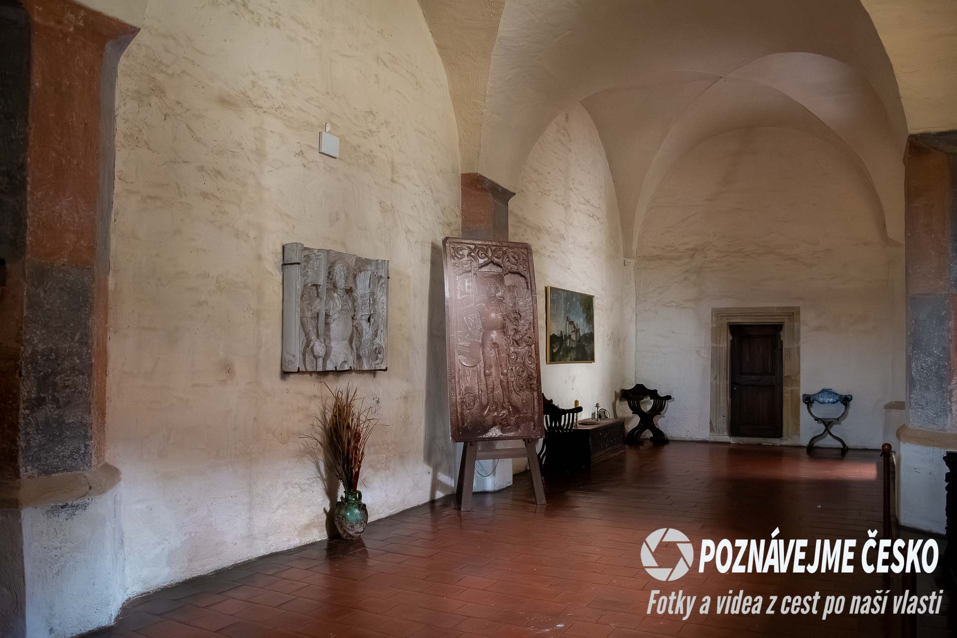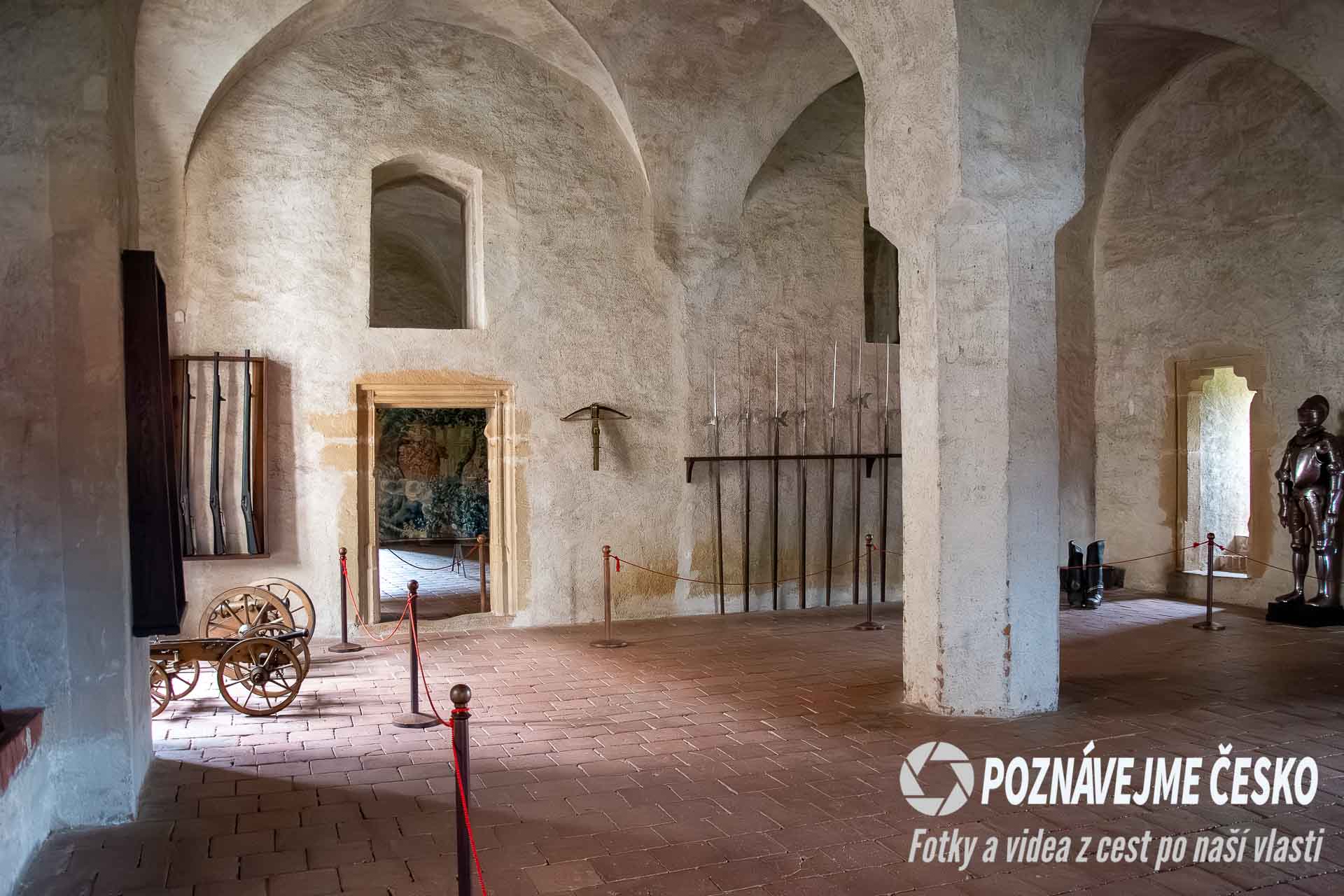 Interiéry hradu nabízejí návštěvníkům fascinující pohled do minulosti prostřednictvím náznakových instalací původních funkcí prostor, jako je hodovní síň, zbrojnice, fraucimor či černá kuchyně. Skutečným unikátem je Taneční sál s mimořádně hodnotným renesančním kazetovým stropem z roku 1581, který sem byl v 50. letech 20. století přenesen ze zaniklého zámku v Dobrovicích. V hradní kapli se dochovala vzácná nástěnná malba Jindřicha Švihovského jako sv. Jiří z roku 1520, která je považována za první dochovanou krajinomalbu v českých zemích. Mezi sbírkami vyniká také kolekce renesančních tapiserií s výjevy z antické mytologie. Kuriozitou, o které možná nevíte, je ukázka dobové toalety, kde se k osobní hygieně před 500 lety využívaly dosti neobvyklé prostředky, včetně živé kočky.