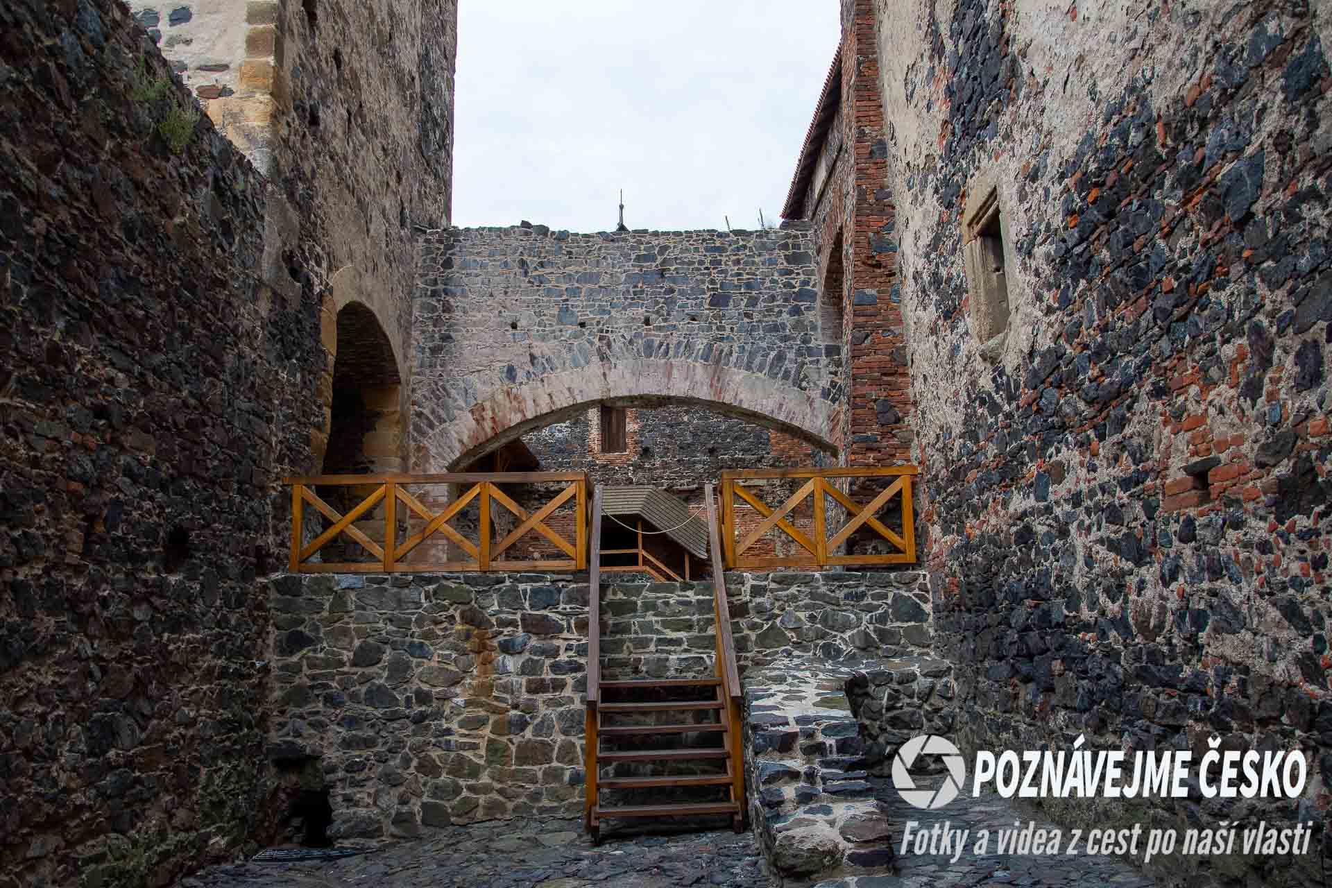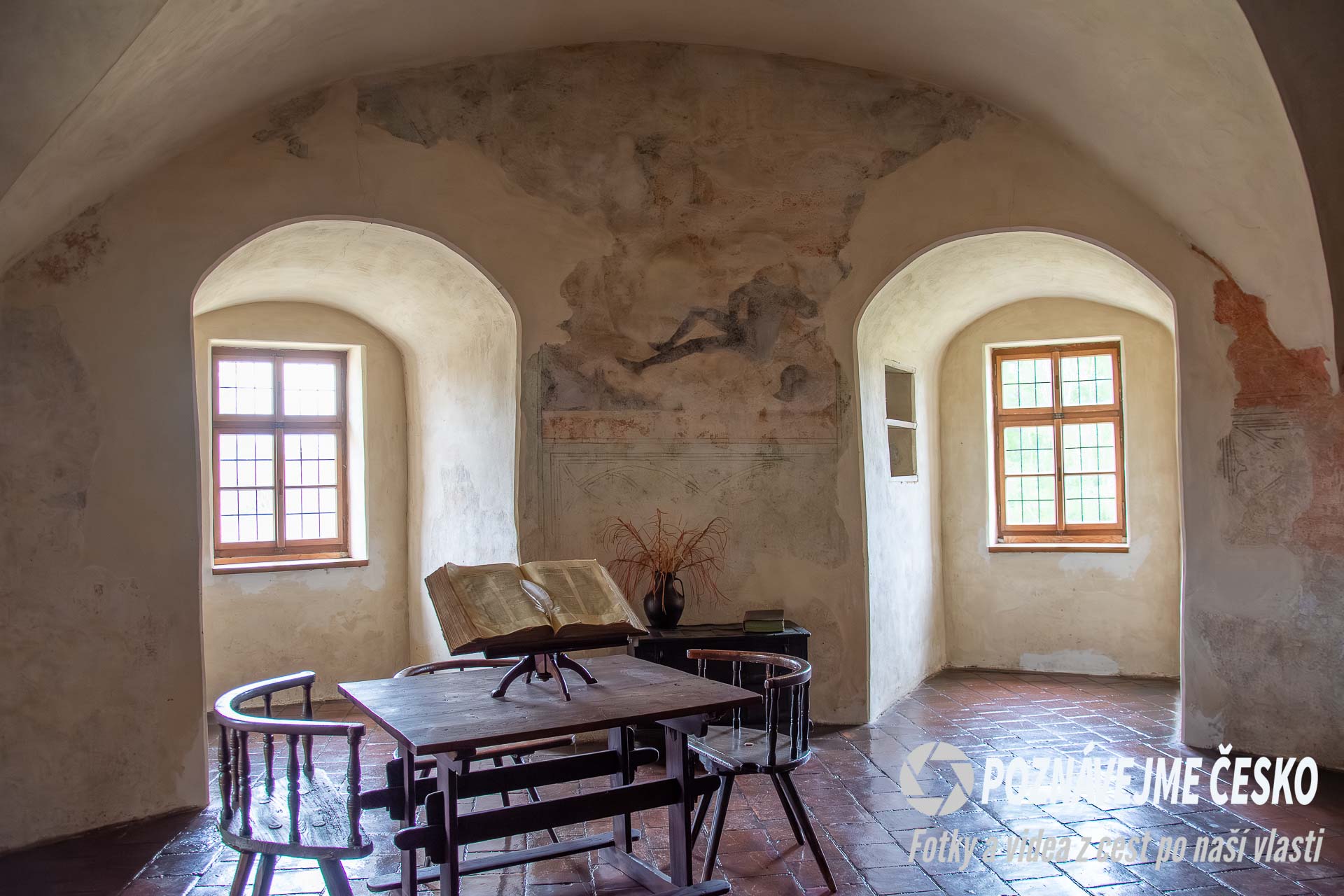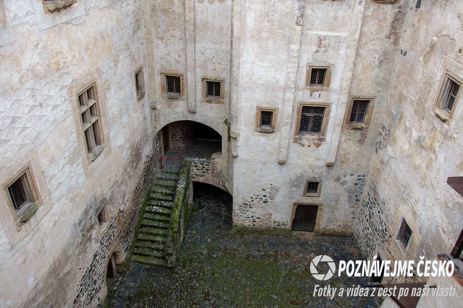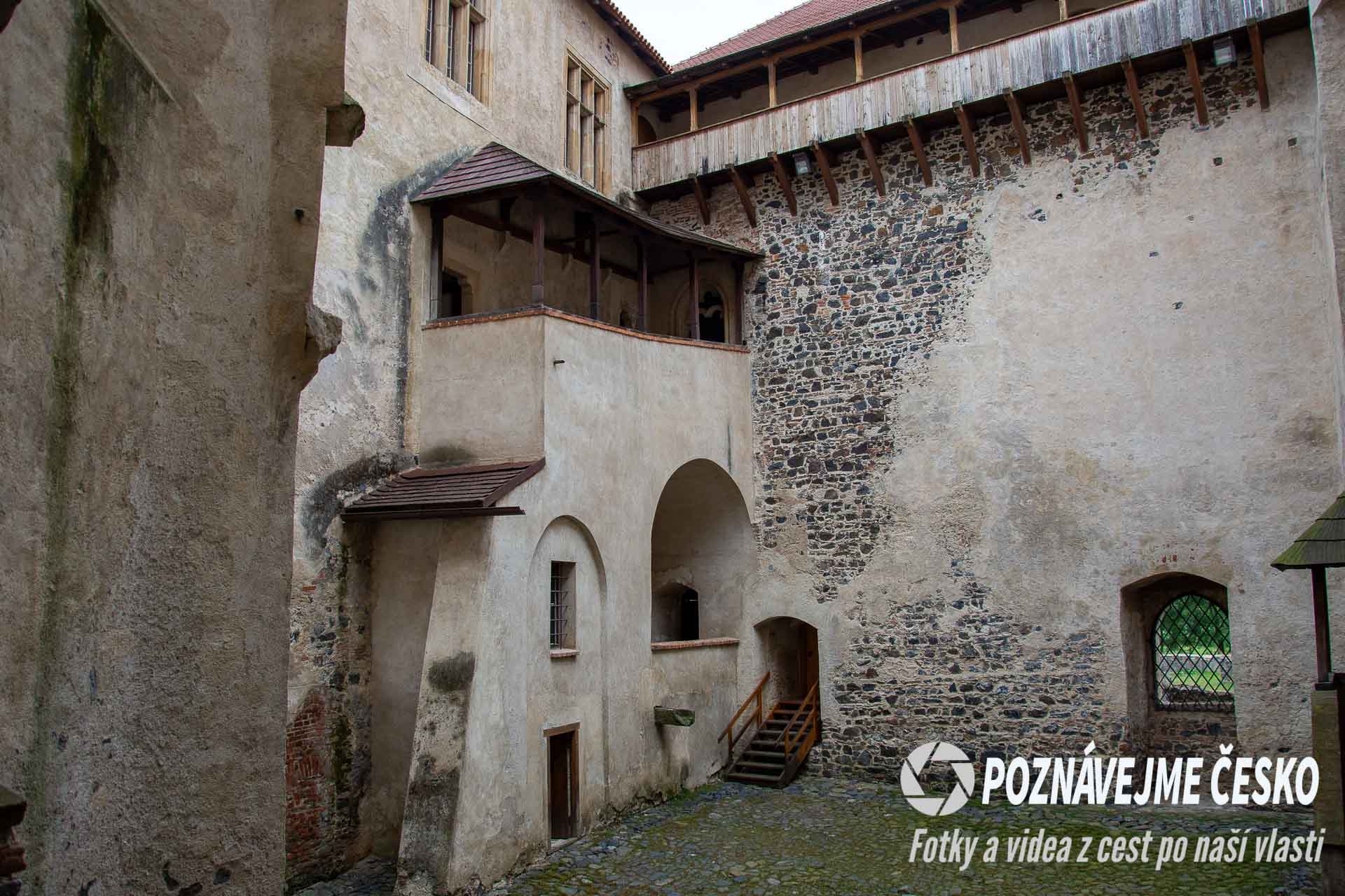 Interiéry hradu nabízejí návštěvníkům fascinující pohled do minulosti prostřednictvím náznakových instalací původních funkcí prostor, jako je hodovní síň, zbrojnice, fraucimor či černá kuchyně. Skutečným unikátem je Taneční sál s mimořádně hodnotným renesančním kazetovým stropem z roku 1581, který sem byl v 50. letech 20. století přenesen ze zaniklého zámku v Dobrovicích. V hradní kapli se dochovala vzácná nástěnná malba Jindřicha Švihovského jako sv. Jiří z roku 1520, která je považována za první dochovanou krajinomalbu v českých zemích. Mezi sbírkami vyniká také kolekce renesančních tapiserií s výjevy z antické mytologie. Kuriozitou, o které možná nevíte, je ukázka dobové toalety, kde se k osobní hygieně před 500 lety využívaly dosti neobvyklé prostředky, včetně živé kočky.