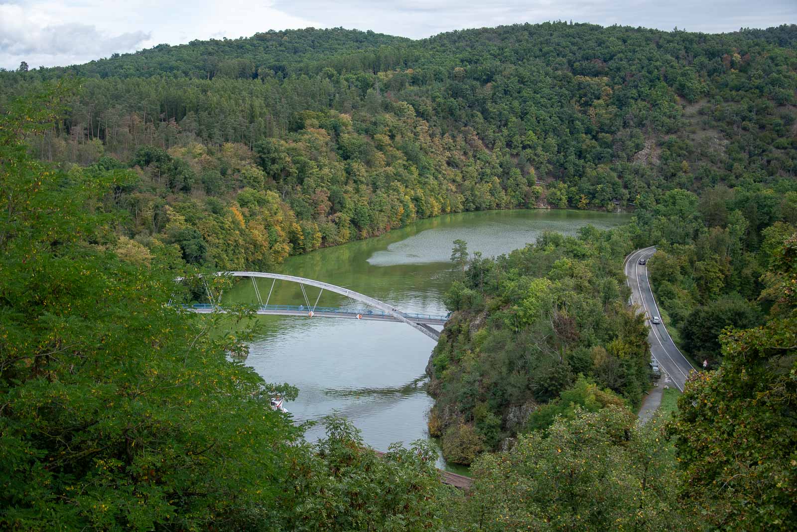 Když se otevřou dveře na terasu, je to úleva. Najednou stojíte v místech, kde kdysi býval přemyslovský palác, a před vámi se rozvine údolí Svratky, které dnes většina lidí vnímá jako součást Brněnské přehrady. Vidíte lávku z roku 2003, v dálce se dá (z některých míst a za správných podmínek) zahlédnout i pozůstatek staršího mostu – pilíř s kovovým křížem. A hlavně: lesy, kvůli nimž Veveří po staletí žilo loveckou tradicí.