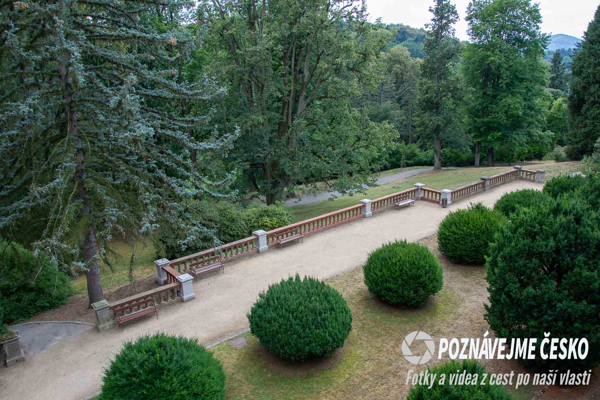 Zámecký park o rozloze 340 ha je domovem vzácných rostlin, naučných stezek a elegantní Růžové zahrady. Ta se pyšní nejen mnoha odrůdamí růží, ale také historickými skleníky s exotickými rostlinami.
