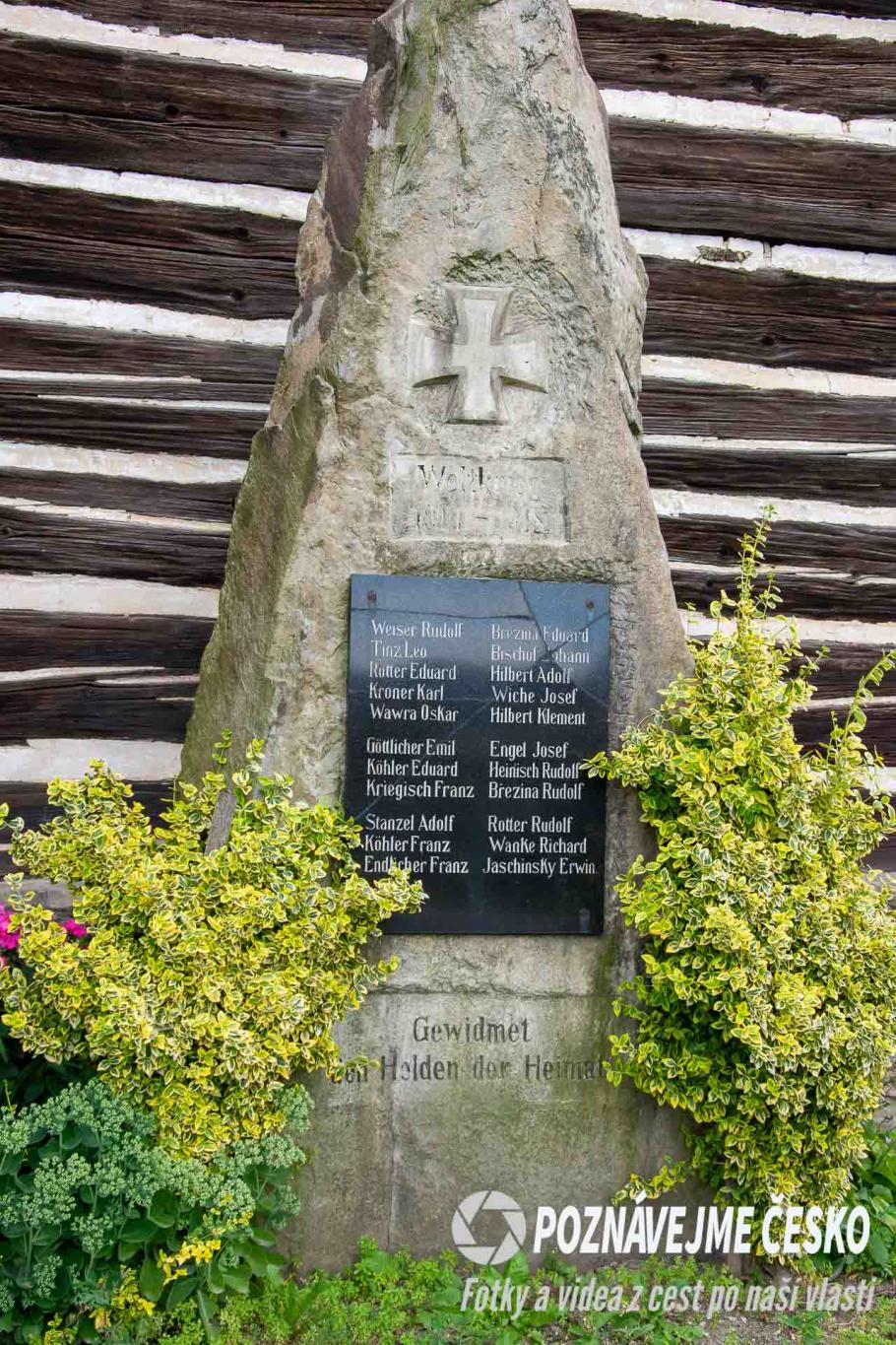 Kříž za kostelem nepůsobí okázale, ale o to silněji zapadá do okolního prostoru. Stojí v tichém zákoutí, odkud se otevírá pohled na kostel i okolní krajinu, a připomíná, že víra v horských obcích nebyla jen záležitostí interiéru svatostánku, ale přirozenou součástí každodenního života.