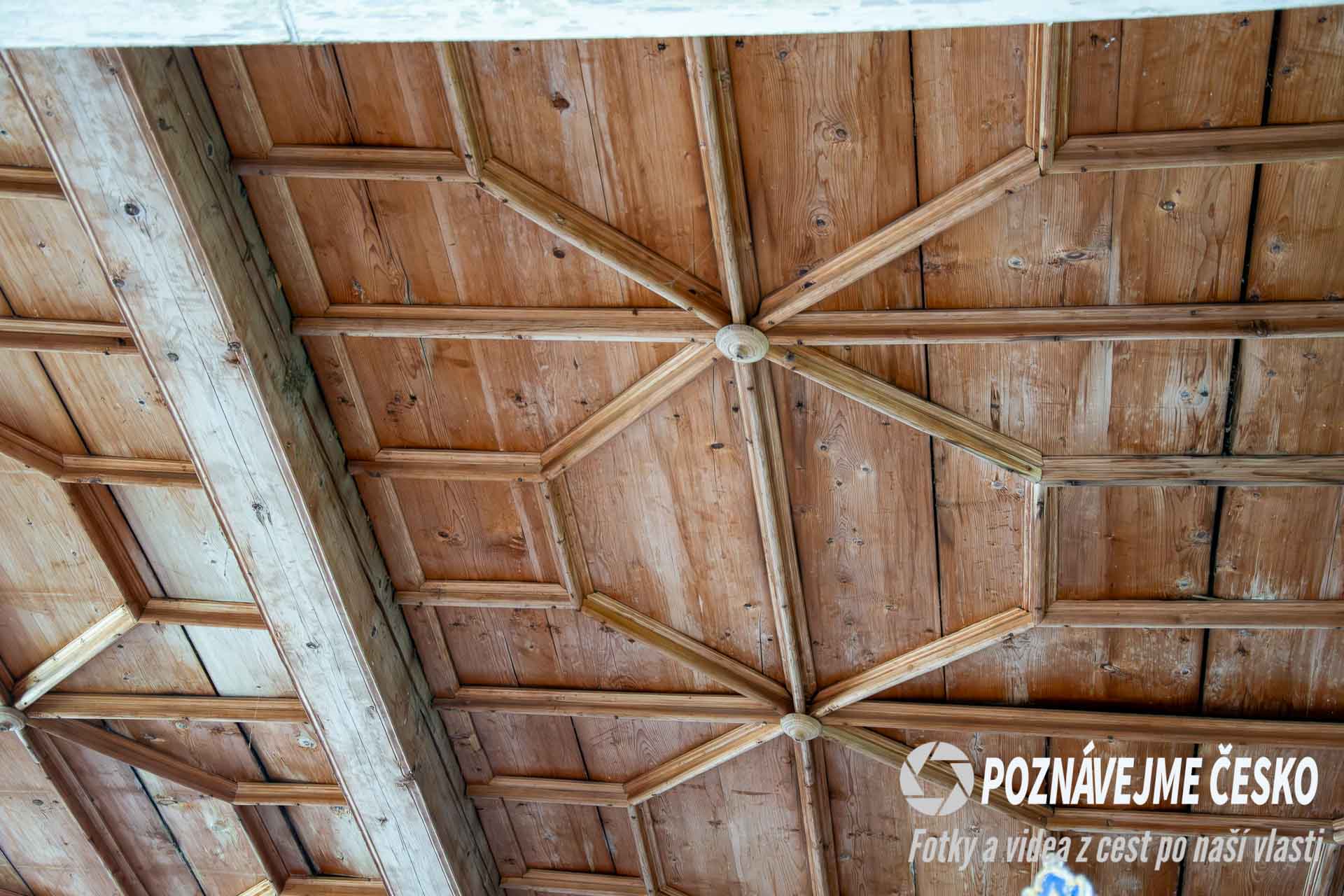 Skutečné bohatství se skrývá uvnitř. Interiér kostela se dochoval v mimořádně autentické podobě a je doslova přehlídkou dřevěné řemeslné práce. Stěny jsou obloženy prkny, jejichž spáry kryjí jednoduché lišty, a nad hlavou se rozprostírá unikátní kazetový strop členěný pravoúhlými obrazci. Každá kazeta působí nenápadně, ale dohromady vytvářejí harmonický celek, který prostoru dodává rytmus i klid.