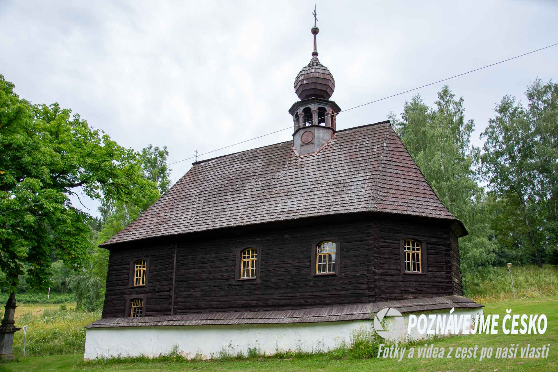 Kostelík je samostatně stojící, orientovaná roubená stavba postavená ve svahu na kamenné, omítnuté podezdívce kryté šindelem. Má obdélný půdorys s trojboce zakončeným kněžištěm. Střechu tvoří vysoká valbová konstrukce krytá štípaným šindelem, jejíž dominantou je barokní sanktusník s lucernou a cibulí. Trámové konstrukce jsou spojeny tradičními rybinovými spoji.