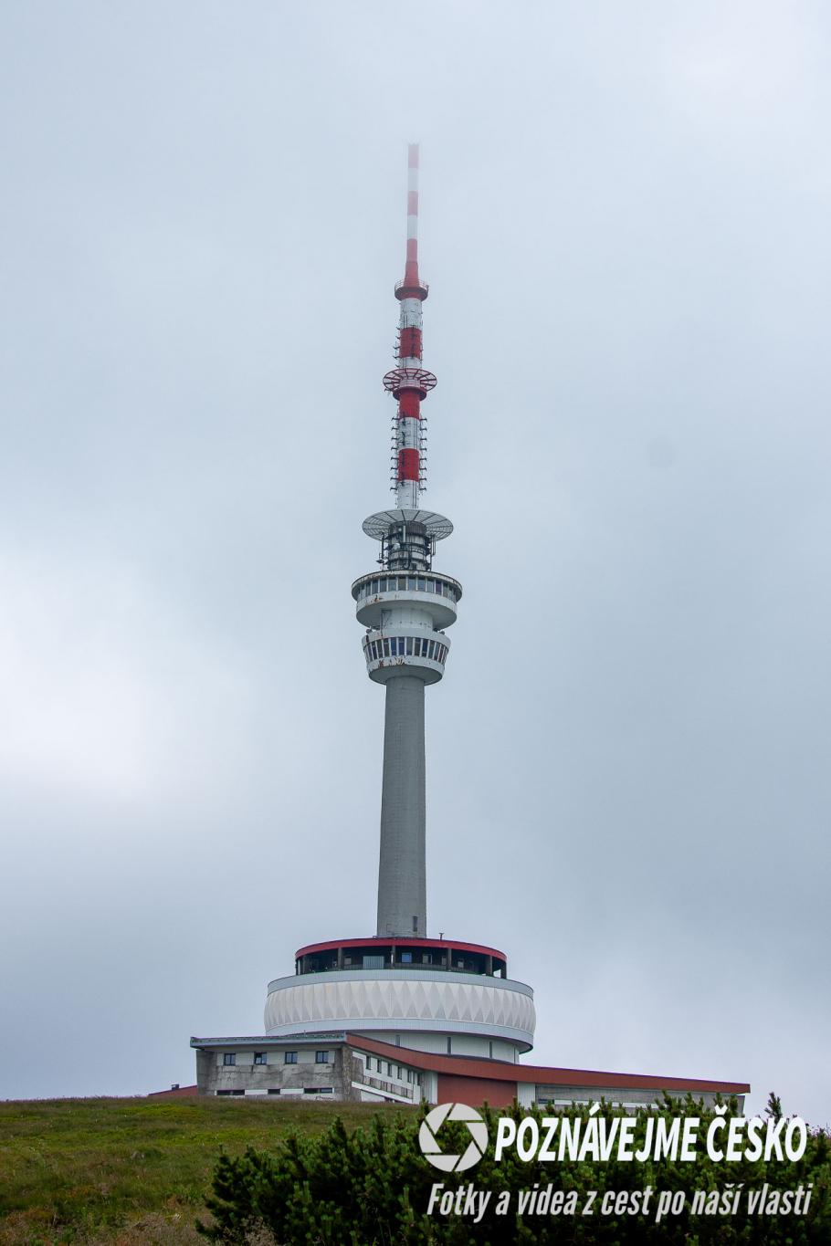 Architektonickou tvář vrcholu zásadně ovlivnily dvě dominantní stavby, z nichž první byla kamenná věž Habsburg, otevřená v roce 1912, která svou podobou připomínala středověký hrad a sloužila jako rozhledna i restaurace. Tato věž však kvůli nedostatečné poválečné údržbě v roce 1957 musela být uzavřena a o dva roky později se definitivně zřítila. Současnou dominantu tvoří moderní, 162 metrů vysoká telekomunikační věž vybudovaná v letech 1970–1980, v jejímž nitru se nachází meteorologická stanice, hotel, restaurace a prosklený vyhlídkový ochoz. Zajímavostí, kterou možná nevíte, je skutečnost, že vrchol tohoto vysílače představuje nejvýše položený pevný bod v České republice s nadmořskou výškou 1653 metrů, čímž o desítky metrů převyšuje i vrchol Sněžky.