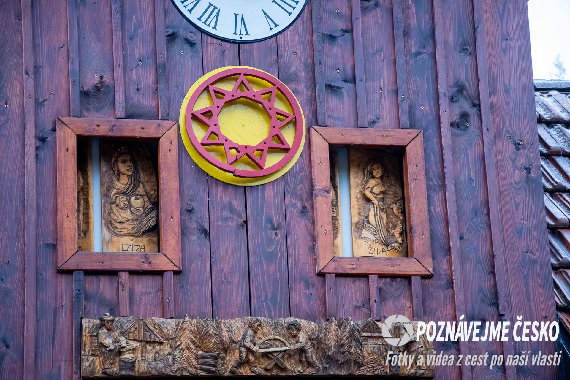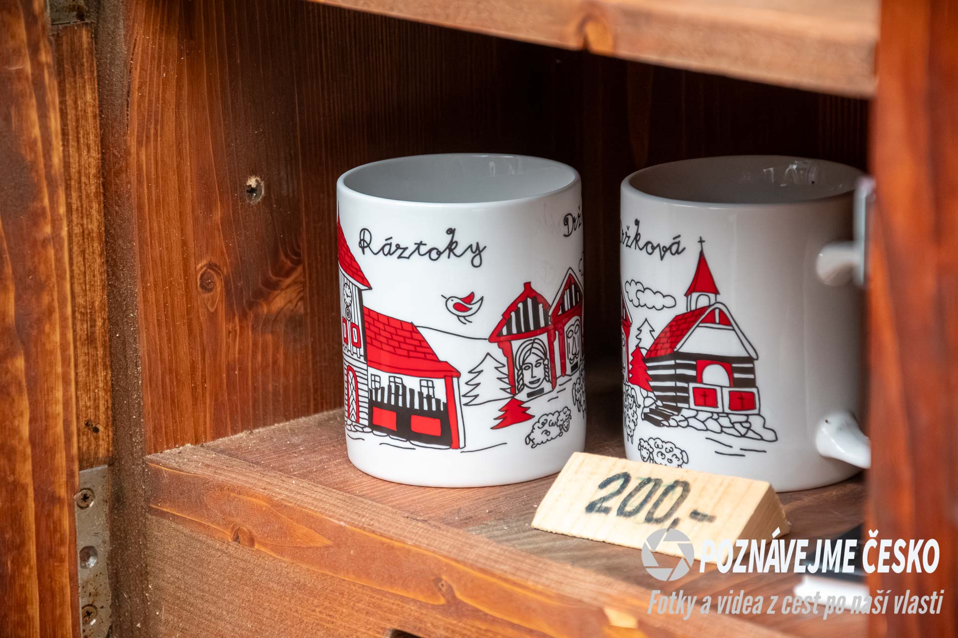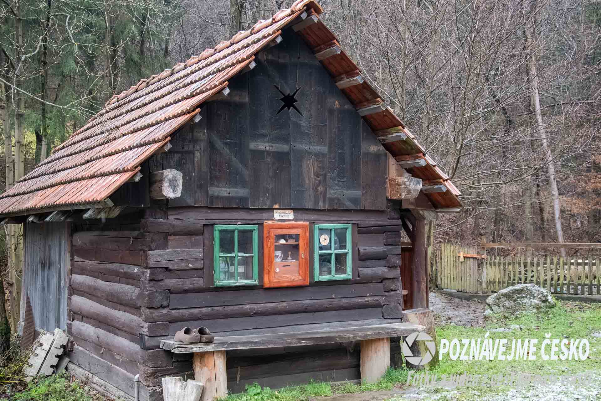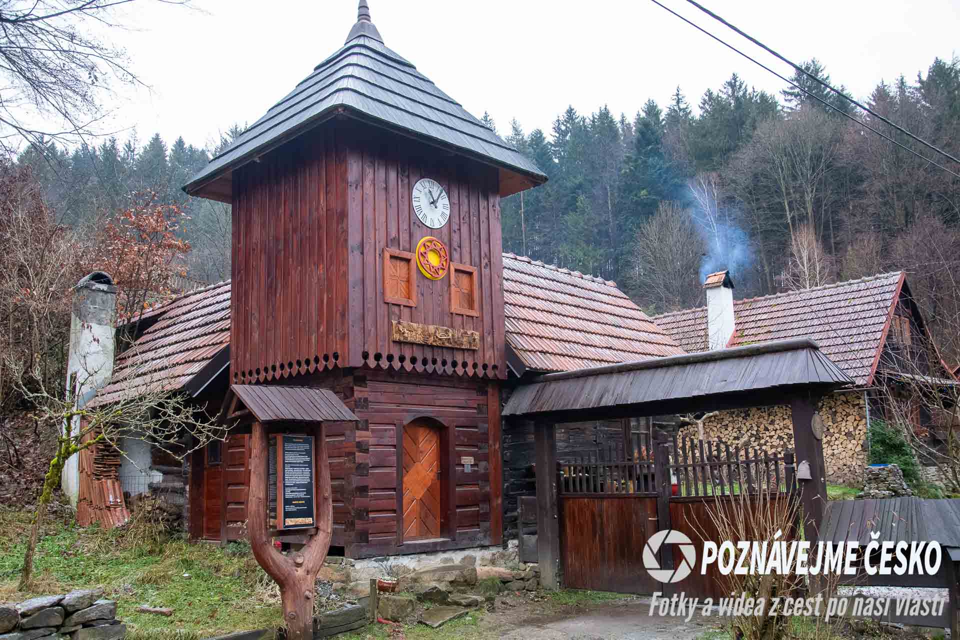 Naproti orloji se nachází malá dřevěná stavba, kde si můžete zakoupit turistické vizitky, známky a další upomínkové předměty, jako například keramické hrníčky. Tento obchod funguje na principu dobrovolnosti a poctivosti, což podtrhuje autentickou atmosféru valašského prostředí.