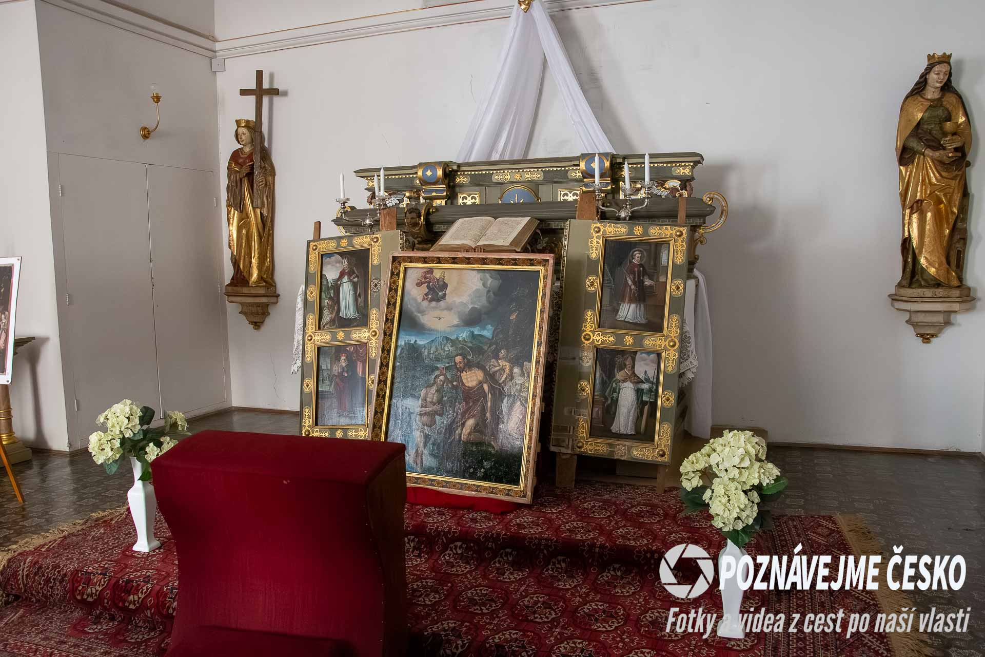 Přímo v tomto prostoru se nacházejí pozdně gotické sochy svaté Barbory, svaté Heleny a Panny Marie z roku 1491. Kromě nich kaple ukrývá také raně barokní tabulový oltář z počátku 17. století a dřevěnou sošku světice ze 16. století. Kaple je veřejnosti přístupná v rámci prvního prohlídkového okruhu, který představuje reprezentační místnosti zámku.