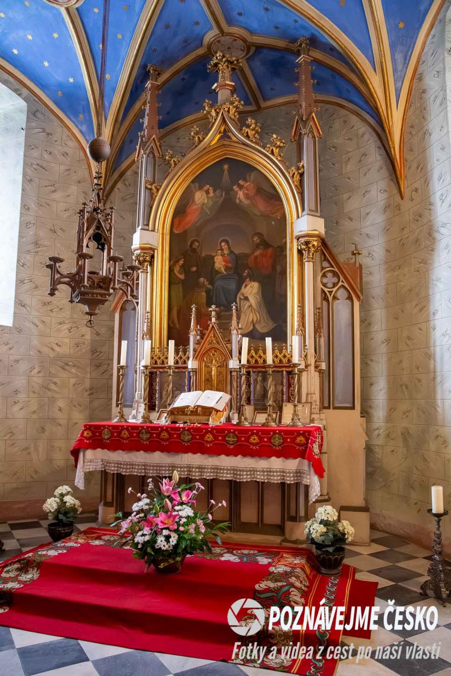 V interiéru vyniká zámecká kaple, která ukrývá umělecky nejcennější předměty.